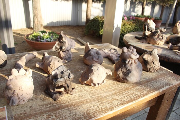 卒園制作では丸めた新聞紙の上に平らに伸ばした粘土を張り付けそこからイメージを膨らませて思い思いのものに仕上げていきました。