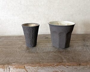 a-3 錆釉タンブラー(右)a-4 錆釉銀彩しのぎ茶杯(左)